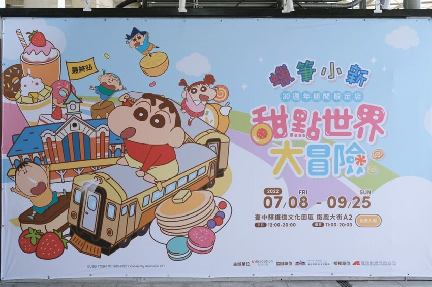 ▼來到【臺中驛鐵道文化園區】總是會有全新驚喜,今年夏天,將由蠟筆小新和春日部成員跟著大家,帶來巡迴全台的【甜點世界大冒險】,就在最終一站台中車站甜蜜登場,除了超級卡哇伊的繽紛展區之外,更結合鐵道文化及古蹟元素,帶來不一樣的全新碰撞火花,讓粉絲一同感受甜滋滋的氛圍~