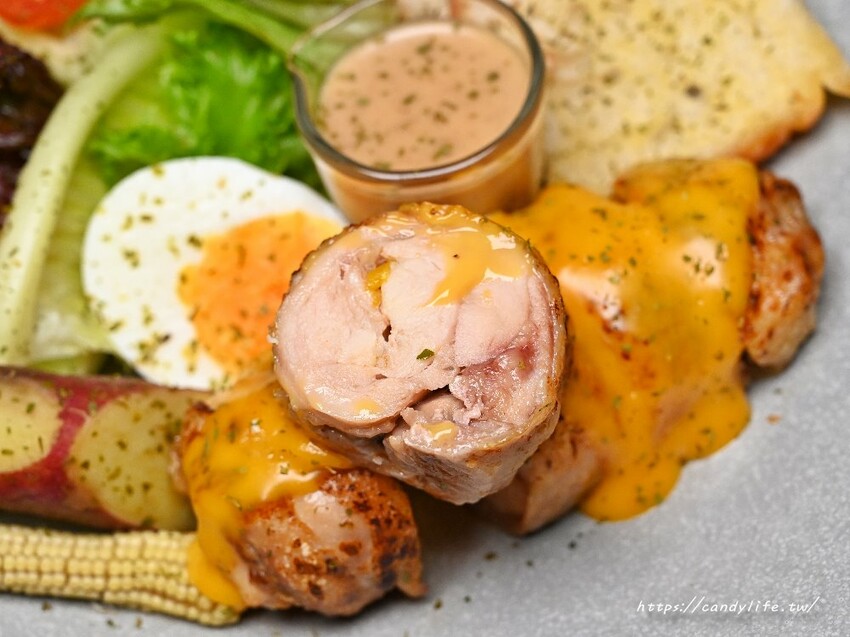 這裡的雞腿捲不是採用冷凍雞肉,而是選用溫體雞腿肉,捲入新鮮蔬菜及乳酪,搭配主廚特製的起司醬,肉質相當軟嫩,除了雞肉本身的鮮甜,還多了起司的香濃