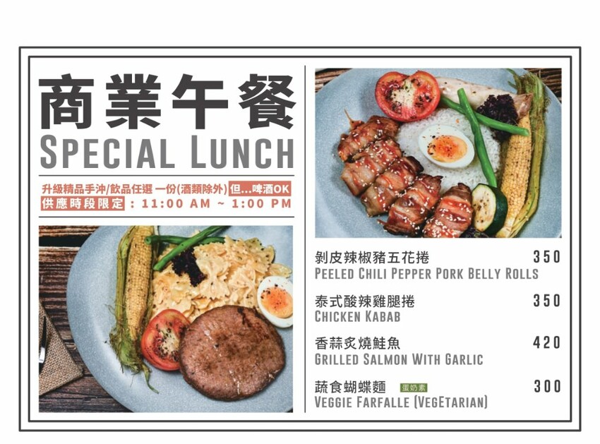 採用去骨醃製的雞腿排,單純以烘烤方式,將外皮烤製微焦香脆,裡頭的肉質更是鮮嫩多汁,除了雞腿排,底下的烘蛋也好吃,裡頭加入了義式香料增添風味,香氣更加迷人
