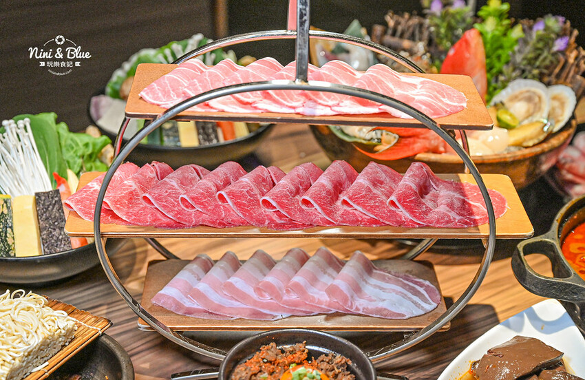 雙人餐的肉品有三種,紐澳草飼低脂牛、台灣梅花豬、台灣小培豬