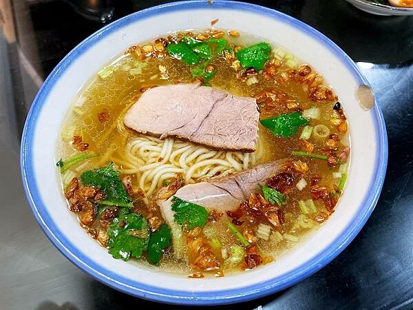 這就是招牌玉里麵,比想像中還要大碗一點,屬於古早味的口味,很簡單的麵條和兩片肉,搭配這湯頭算是還不錯,說不上特別好吃,但是天氣冷吃上一碗熱呼呼的湯麵感覺也蠻好的。