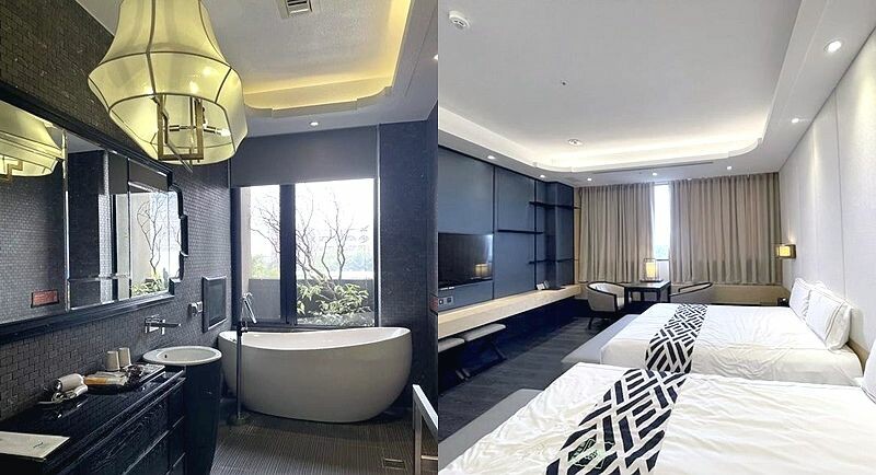 雲平有商旅與汽旅兩個部分,這次我們入住的是商旅雙人房,雖說是雙人房卻是兩大床,根本可以說是四人房了!空間大又舒適,尤其浴缸部分小章魚超滿意,因為可以邊洗邊看電視,開心得不得了咧。