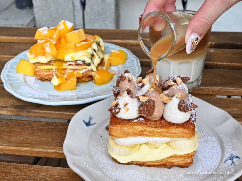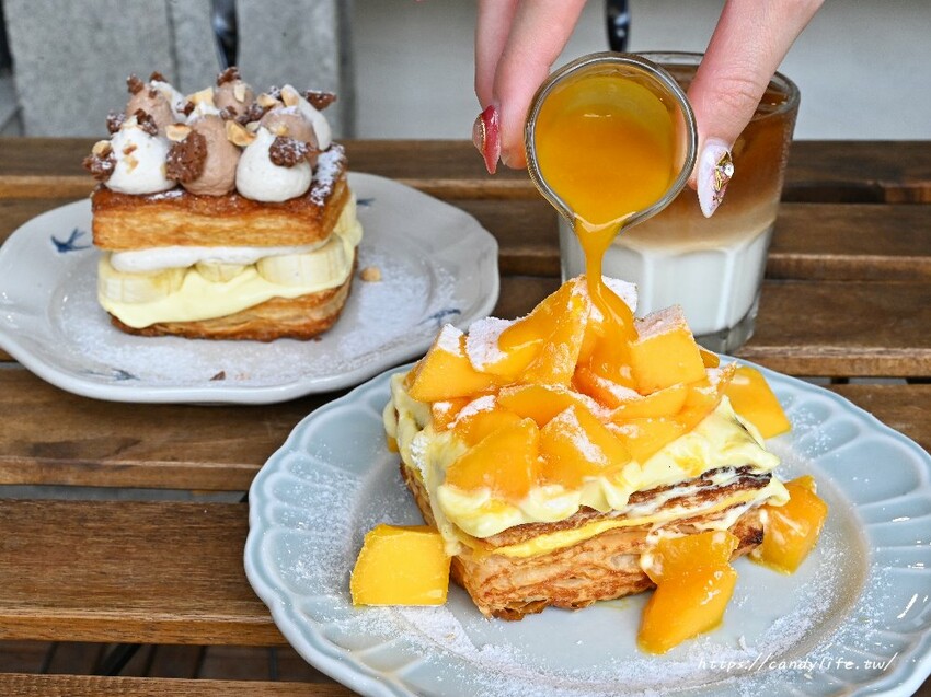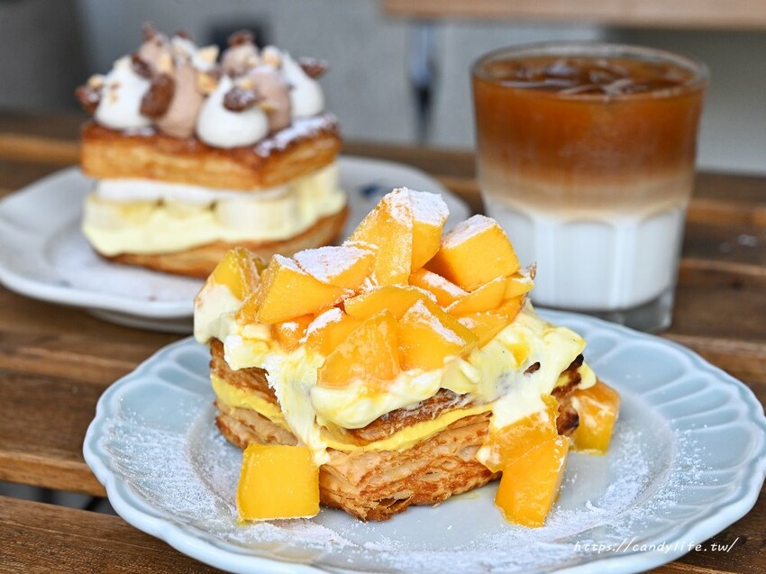 除了菜單上頭的餐點,還有季節限定推出的芒果千層及巴諾菲千層