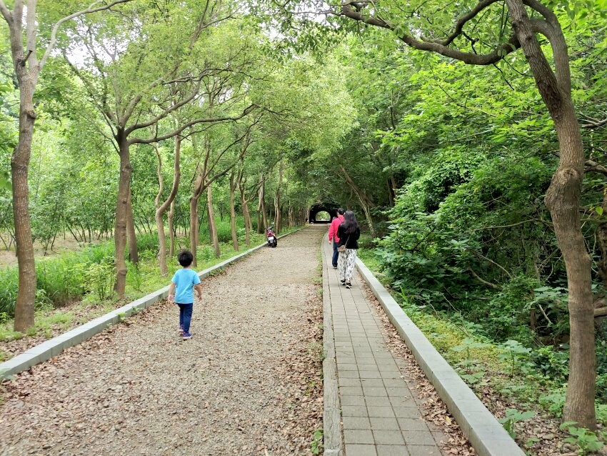 ▼這條根本是綠色隧道,茂密的樹蔭走起來涼爽又不悶熱,小朋友自己走也很安全~~很適合帶小朋友來這裡跑跳!