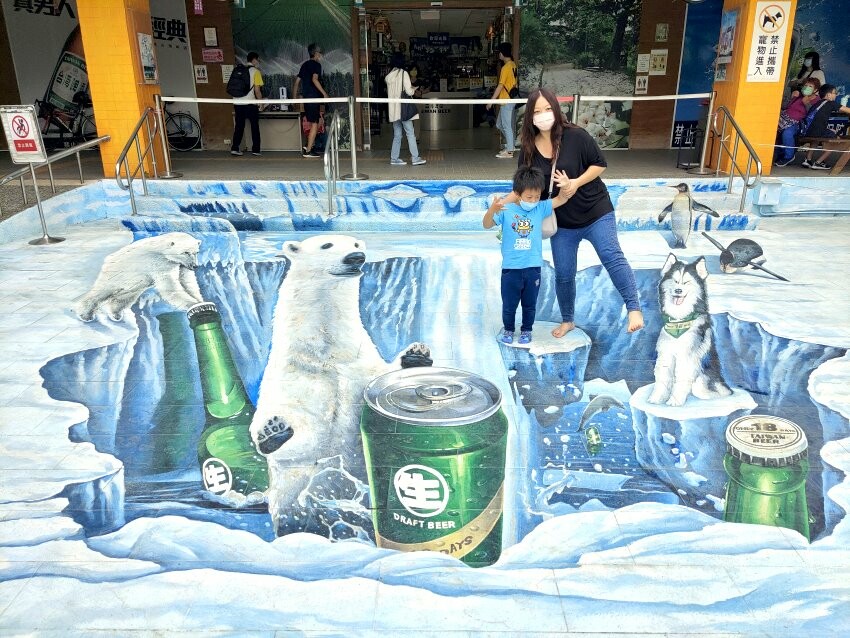 ▼上方還有北極熊、狼陪著大家喝生啤酒,站在上頭真的很有臨場感呢!不過在這裡拍照記得要脫鞋,以免破壞作品囉~~