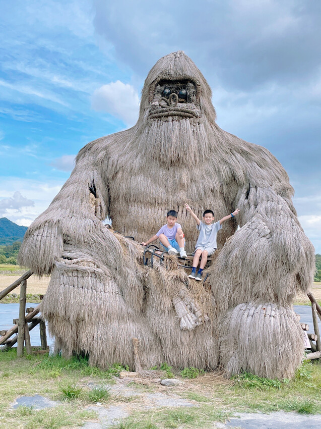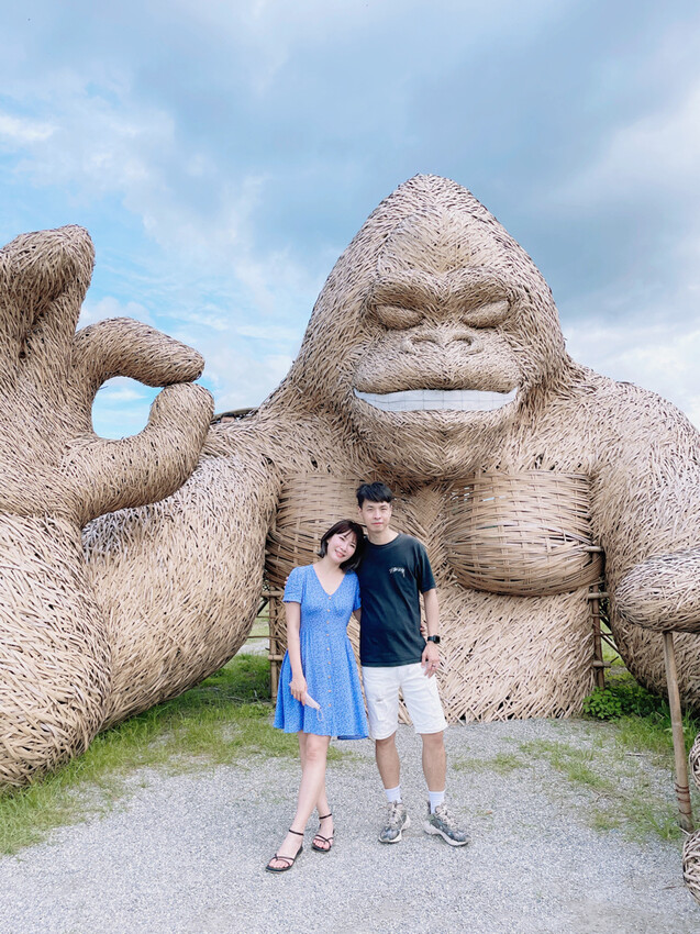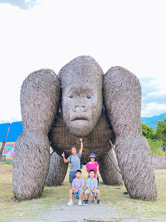 這一隻應該是我覺得來富里稻草藝術季必拍,整隻竹編的大金剛還帶著潔白的微笑,重點是你可以走到它肩上合照耶