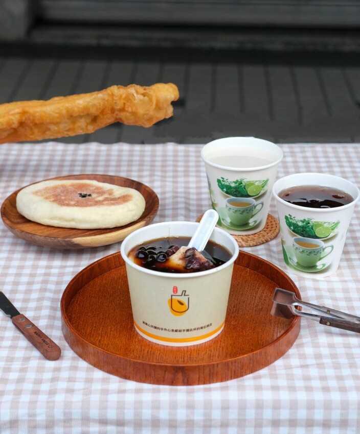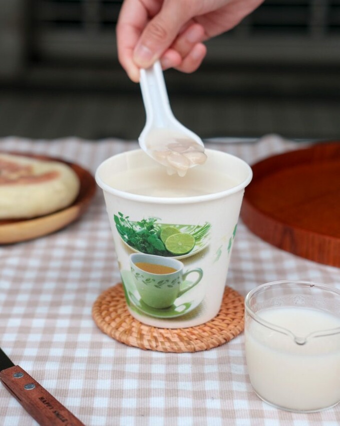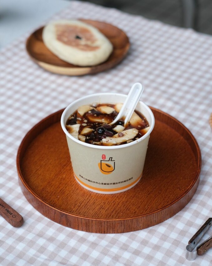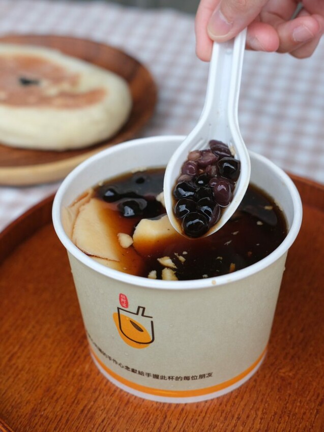 ▼選用了四種杏仁粉調製而成的杏仁茶,特地加入再來米粉一起熬煮,從外觀看起來是醇厚的乳白色,共有三款大小的容量可購買,也可以加上喜歡的配料享用,還沒入口就能聞到清爽的杏仁香,實際喝起來濃稠度很夠,還能吃到明顯的杏仁顆粒,以及燉煮軟爛的花生粒~