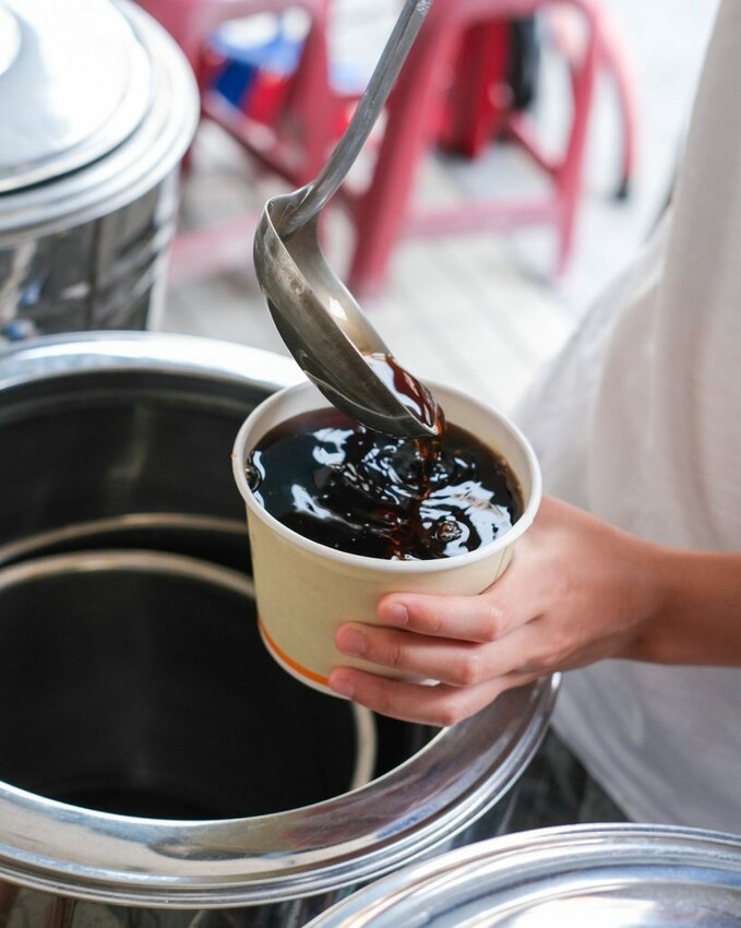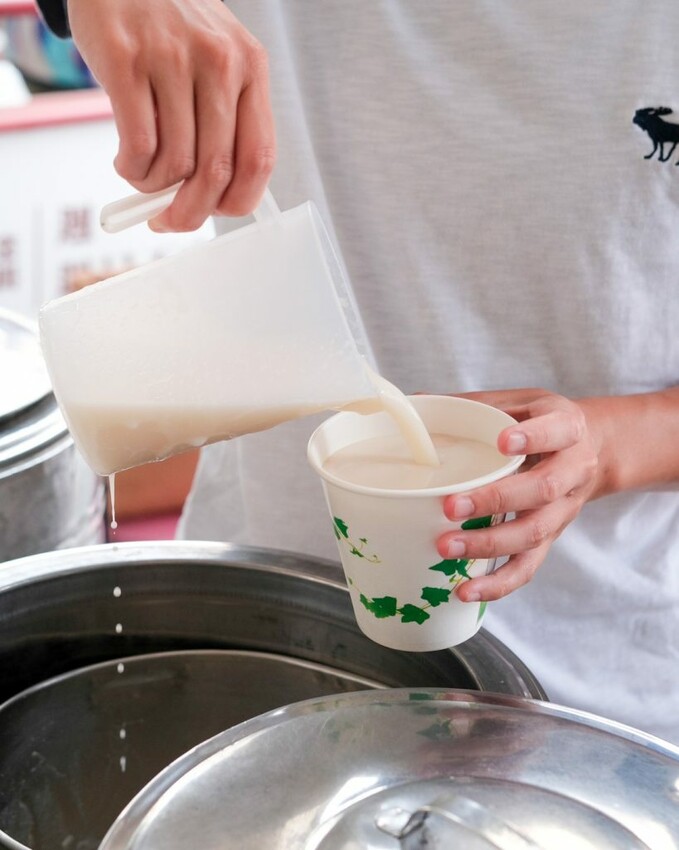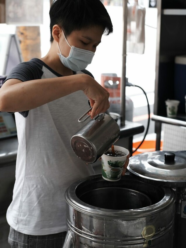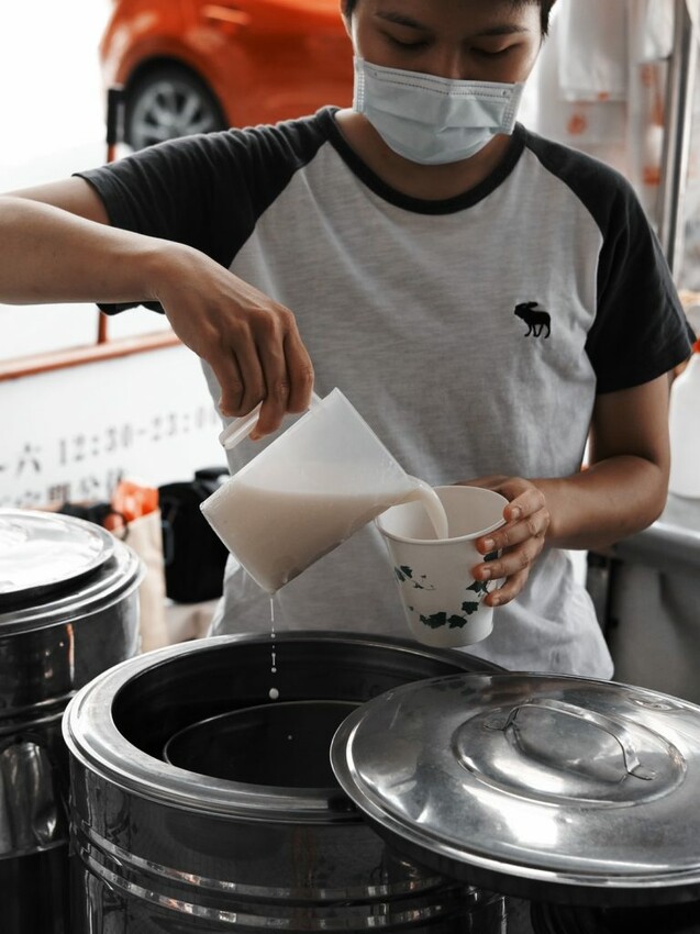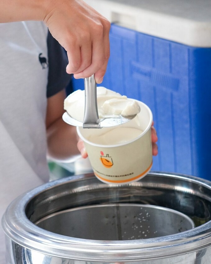 ▼【林阿波杏仁茶豆花】遵循傳承三代的獨家古法,講求天然沒有添加香精或防腐劑,復古的鐵桶中盛取出香噴噴風味,從視覺能感受手工小吃的獨有魅力。