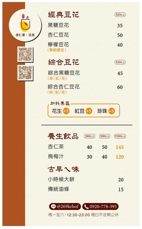 【林阿波杏仁茶豆花】以古早味小吃為特色,共有經典/綜合豆花、養生飲品和古早ㄟ味類型,販售的品項簡單不繁雜,價位走的則是親民路線銅板價。