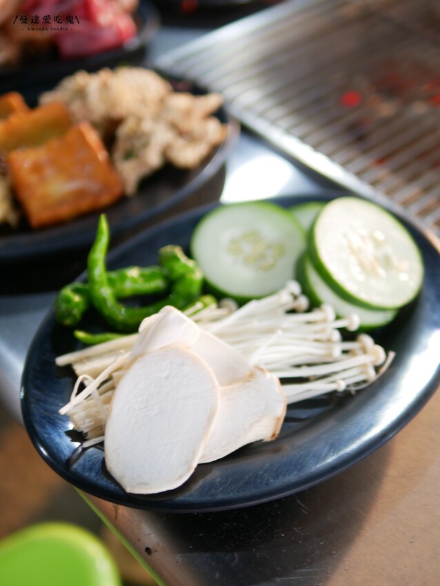 小琉球-龜龜燒烤 採炭火燒烤方式,烤肉過程中不斷散發出陣陣香氣,真的就是迷人呀!另外,店家帶位入座時會提供鋁箔紙供大家鋪在燒烤架上使用,覺得這樣的方式不錯,能避免食材直接接觸火源、或是油脂不斷滴落引起小小火苗的情況發生,也比較不容易烤焦。曼達看旁邊一桌的爸爸食客更厲害,還直接發揮創意放上洋蔥、肉片和醬料,直接邊烤邊拌炒,根本 pro 級鐵板燒,哈!
