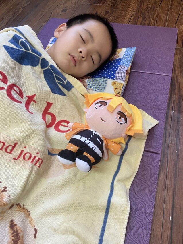 某天青仔的午睡時光,《QMAT摺疊瑜珈墊》回彈力強,回復性能佳,也被我臨時拿來當睡墊。