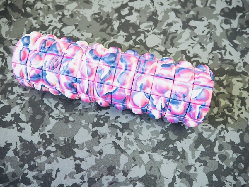 利用滾輪的凸表面的鵝卵石壓紋來滾動小後腿肌肉,以達到按壓式深層的按摩,可以放鬆小腿後側也能對減少足底筋膜炎很有幫助。