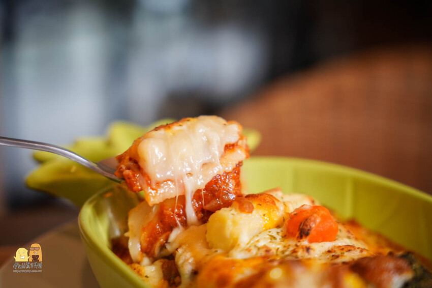 W2咖啡廳的牛肉千層麵,上面除了鋪滿起司之外,還有蔬菜耶~看起來就好美味