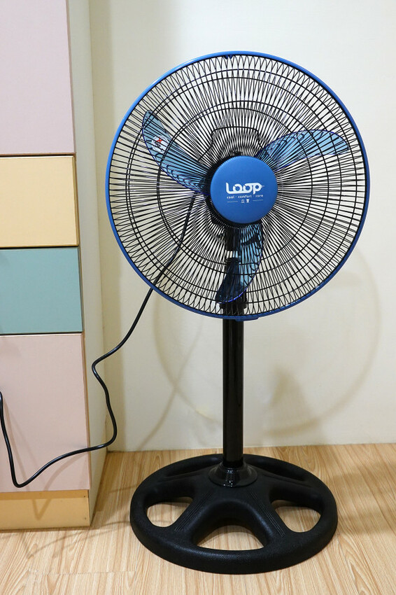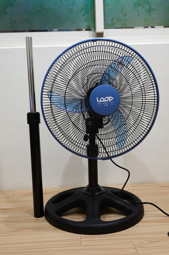 因為有生產外銷的淵源,Loop-立夏生活家電也有販售風扇零件、家電零件,這款LOOP立夏AC電扇有推出18吋座扇、16吋座扇,兩種規格的風扇都有提供藍色、黑色兩種扇葉可選,我選的是16吋的藍色電風。