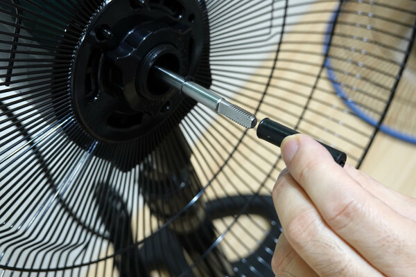 將電扇主體馬達置入於中管,馬達裝上之後就要將主體螺絲旋鎖緊固。