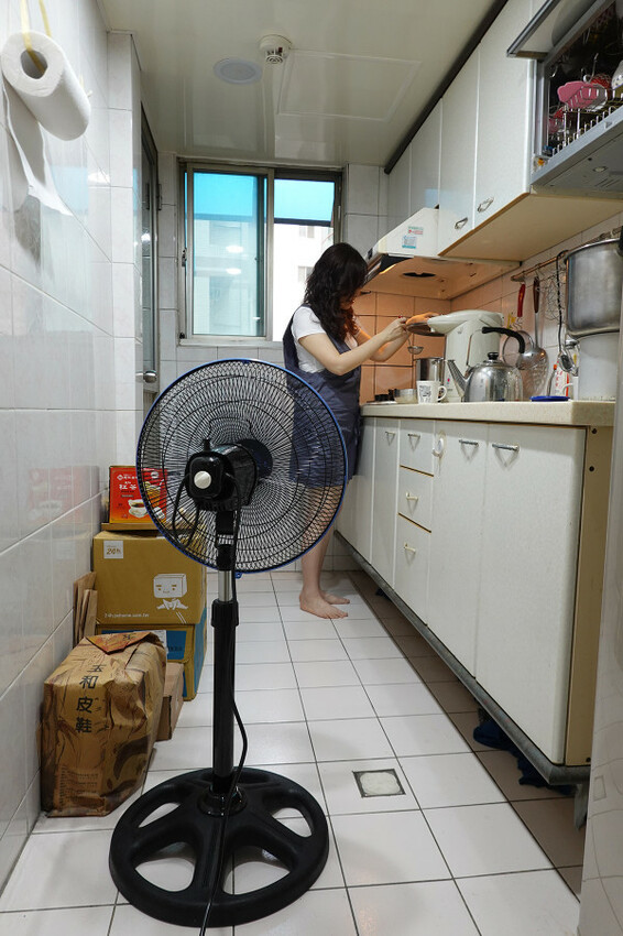 家裡是傳統的一字型廚房所以也沒冷氣,做菜時就像進蒸籠一樣,當然也需要這台大風量的電風來幫忙降溫一下。