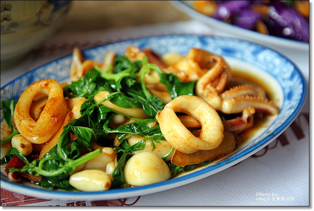 這一道挺特別的,在外面比較少看到,紫蘇與鴨肉這兩道並不陌生的食材,沒想到也可以迸出不一樣的火花,其實口感都很突出也各有特色的紫蘇與鴨肉,乍吃之下覺得各唱各的調,似乎有點違和感,但奇妙的是,吃著吃著倒也覺得挺好吃又有趣的,吃起來非常濃郁搶戲的紫蘇味兒搭配著有點韌性挺耐嚼卻越嚼越香的鴨肉,莫名的嚼著嚼著卻也有著清新爽口的FU。