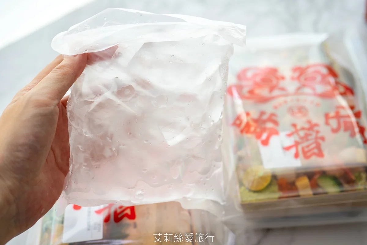 冷食上有附冰塊保冰,冷食和熱食中間還有用紙板隔開呢。