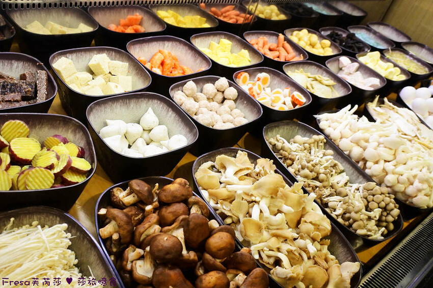 滿滿的火鍋配料、菇類,都讓人看得選擇焦慮.
