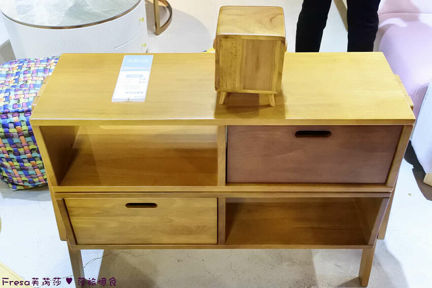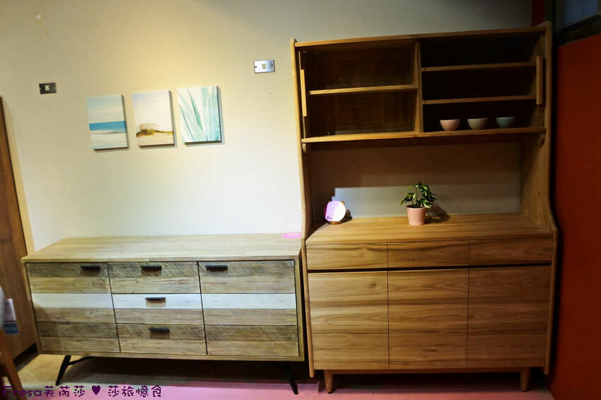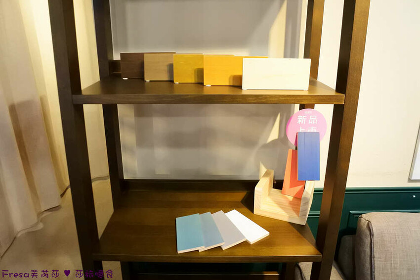 現場也有多層櫃木架,使用水性漆,實木傢俱,擺放居家也是美美配飾品.