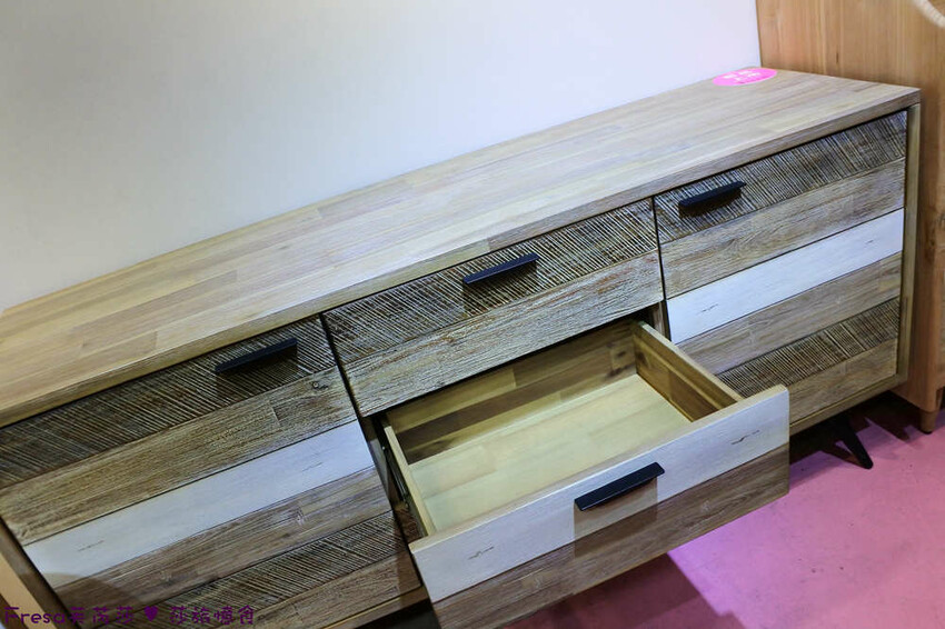 左右各一大格,中間為三層抽屜,當作客廳擺設也相當好看!