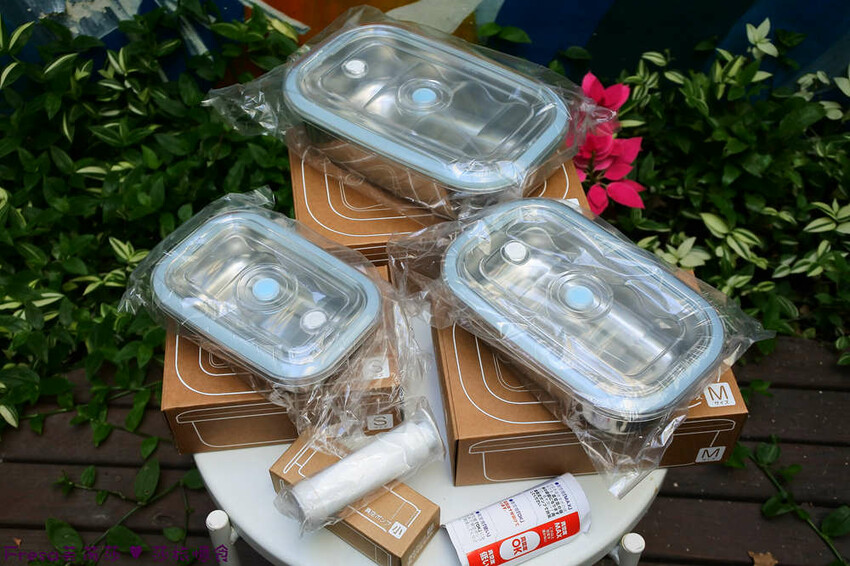 裡頭的不鏽鋼真空保鮮盒都是透明袋裝,一拆開立刻看到產品!