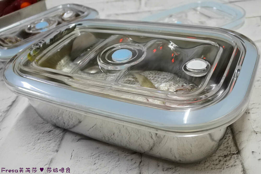 再來最大不銹鋼真空保鮮盒,則是可以放入鮮魚,放個二三天都沒問題.