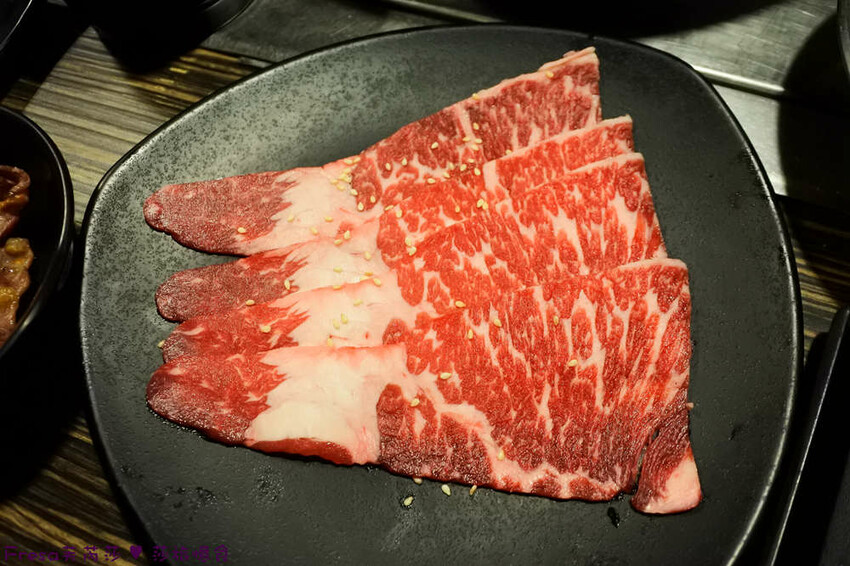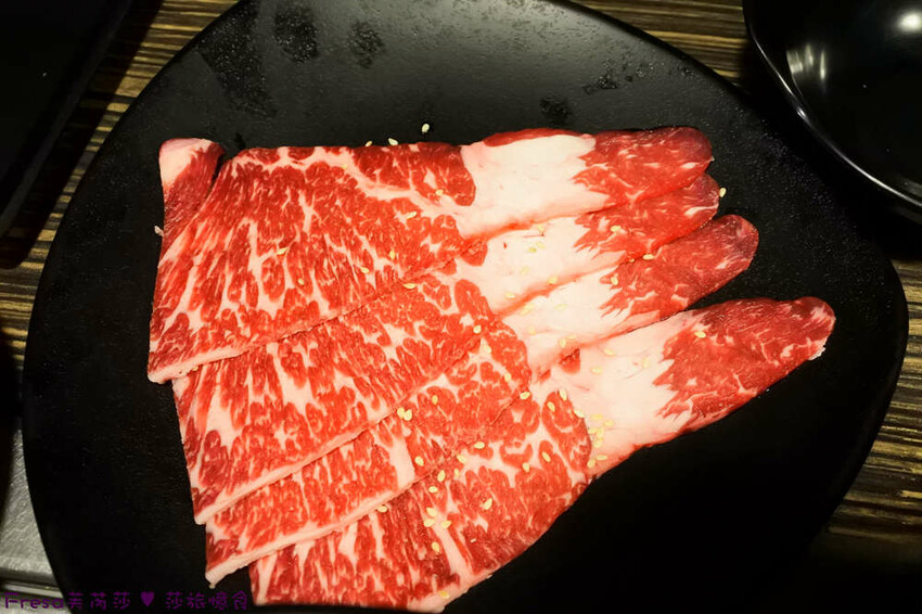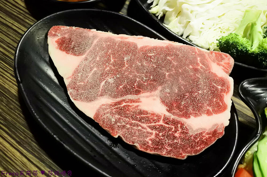 帶有滿漂亮的油花紋路,煎烤後,油脂香濃,滑嫩多汁的口感.
