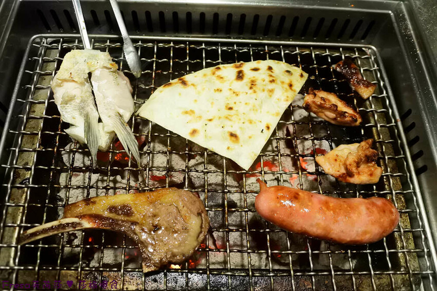 墨魚香腸可以放在烤網慢慢烤,平常燒烤店很少見的品項.