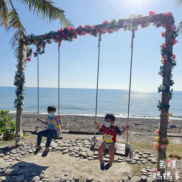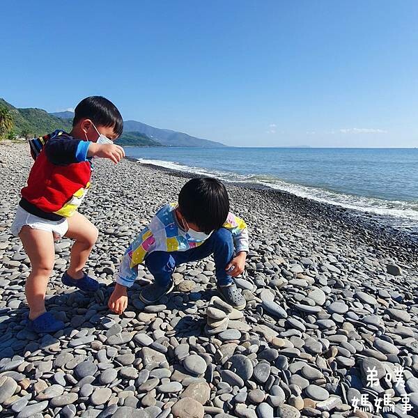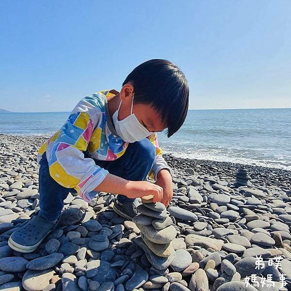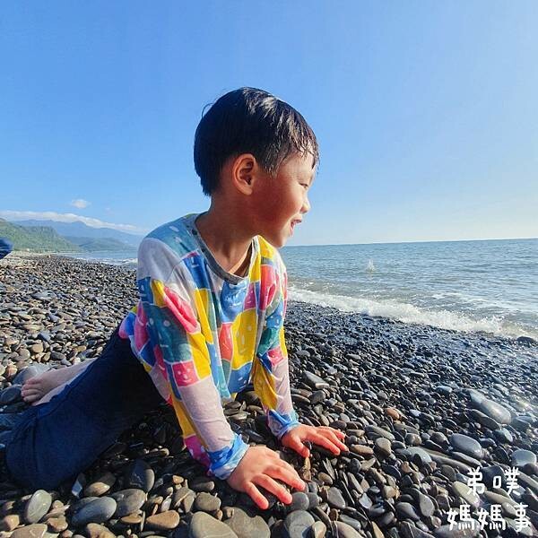 弟噗媽也不是網美路線的,大致拍一拍就帶著已經受不了海水誘惑的孩子衝向海邊