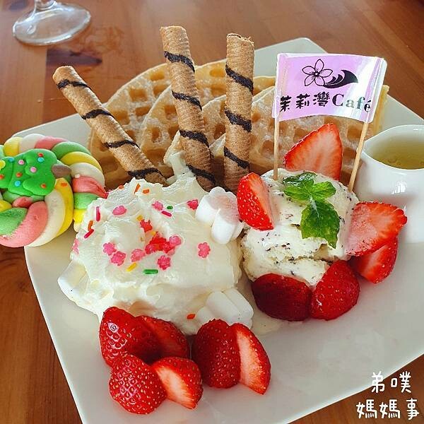 再來就是幸福滿點的鬆餅拉~小孩很捧場,媽媽吃草莓吃得很開心