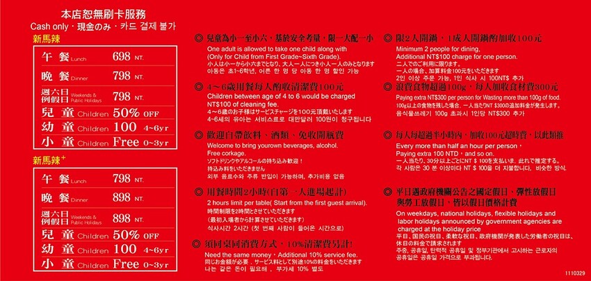 一人用餐另加收100元、10%清潔費另計,浪費食材每人加收200元食材費