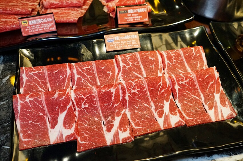 結帳後會給張QR Code掃碼來做點餐,菜單內不僅有饕客最愛的美國SRF極黑和牛、澳洲M6~M9+黑毛和牛、紐澳特級牛舌、美國CAB安格斯黑牛等濕式熟成原塊肉品現點現切,還有美國巨大火雞胇、九孔鮑魚、阿根廷天使紅蝦、台灣在地新鮮海產、時蔬、手工丸餃等食材,就是滿足你刁鑽的味蕾!