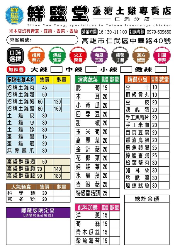 鮮鹽堂泰式鹽水雞 仁武分店 菜單