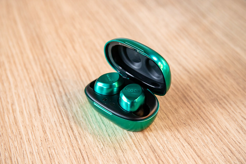 但耳機本體跟充電盒的色調質感很漂亮,隨著角度會有發出金屬光澤感。