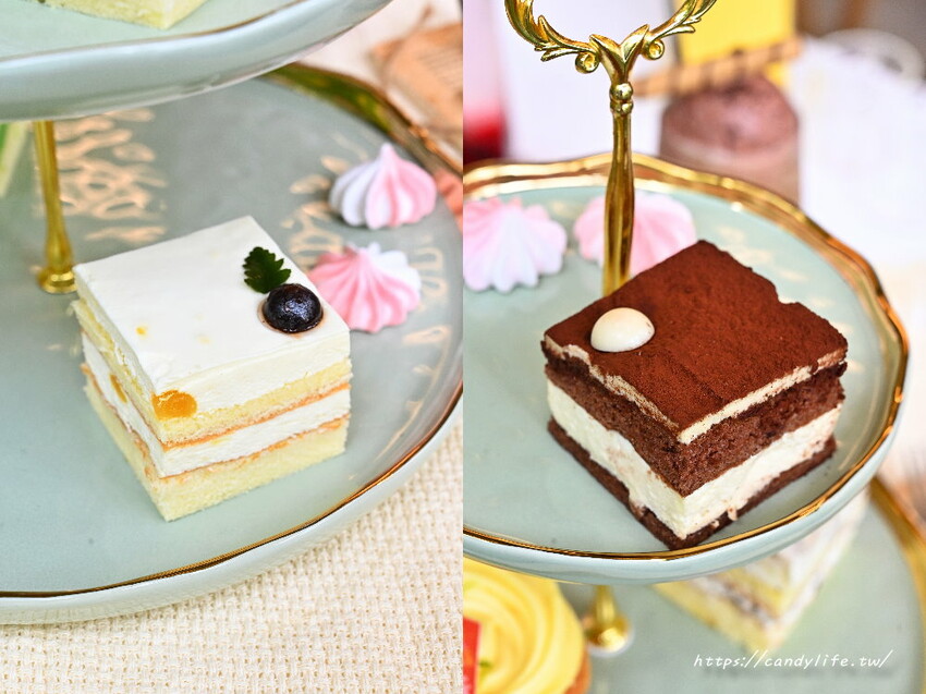 採用法國鐵塔動物鮮奶油及日本進口麵粉,搭配進口熱帶水果製作而成的熱帶水果方塊蛋糕,微酸果香,伴隨著迷人奶香,裡頭還可以咬下香甜果肉呢,提拉米蘇方塊蛋糕裡頭添加了馬斯卡邦乳酪、貝禮詩奶酒,口感綿密,入口即化,吃起來帶有淡淡酒香,甜而不膩