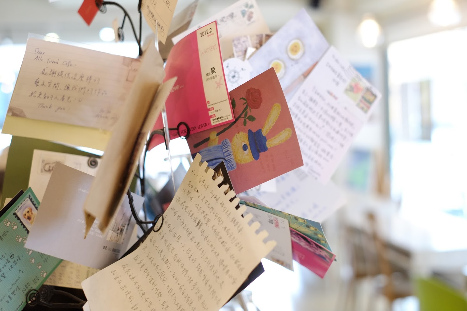 櫃台有寄賣的一些卡片跟手作品,最特別就是這顆來四面八方的明信片樹,看了就讓人喜歡。