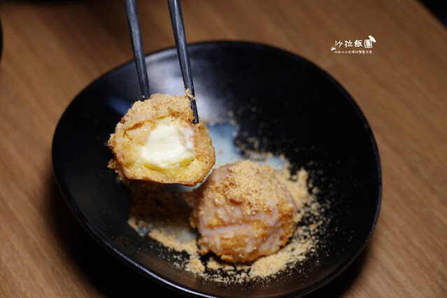 上餐時我們拍完有馬上吃一顆,裡面冰冰涼涼,像是冰淇淋包在裡面,好好吃喔