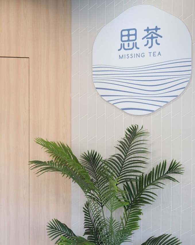 ▼【思茶MissingTea馬偕店】店內設計以品牌色調為主,搭配清爽的淡灰色及木質裝潢,還有打造可以休息等候的座位區,質感的文青風格很適合打卡拍照。