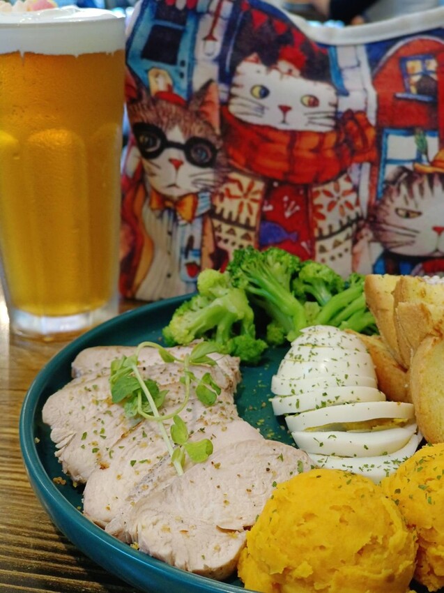 雞胸肉+地瓜泥+花椰菜+水煮蛋+兩片吐司