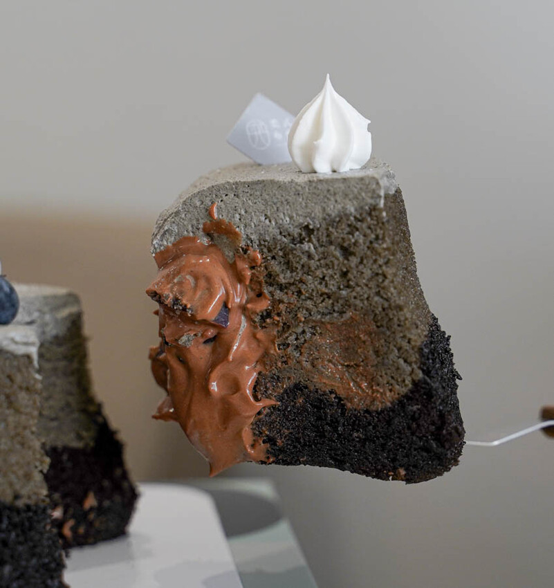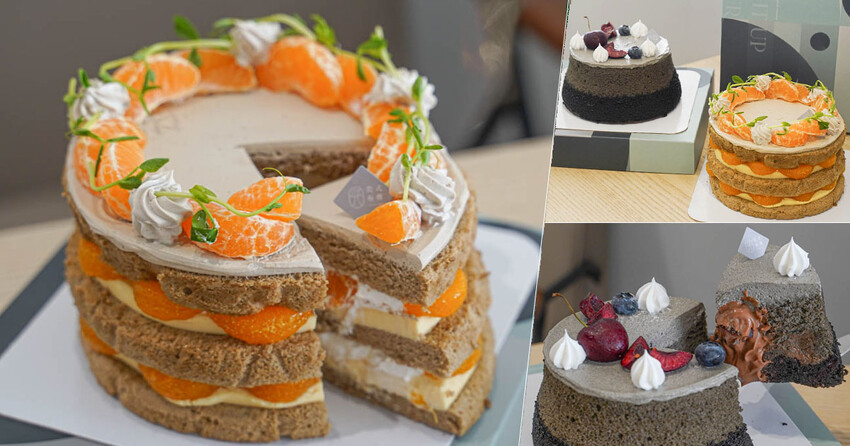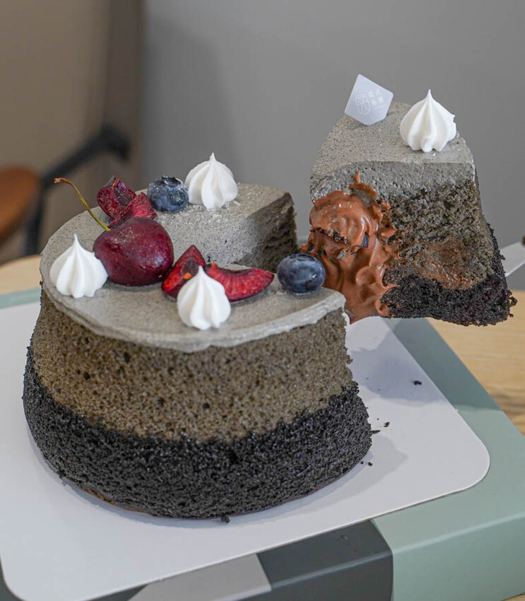 上層灰色是超濃黑芝麻製作的芝麻戚風蛋糕,兩款搭起來相當對味