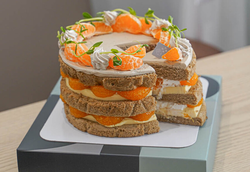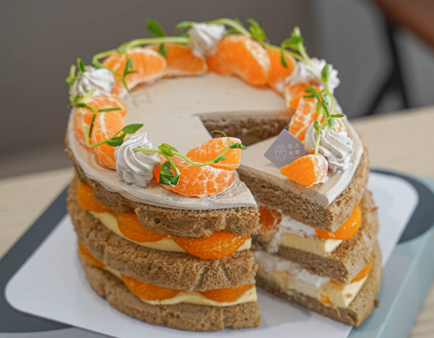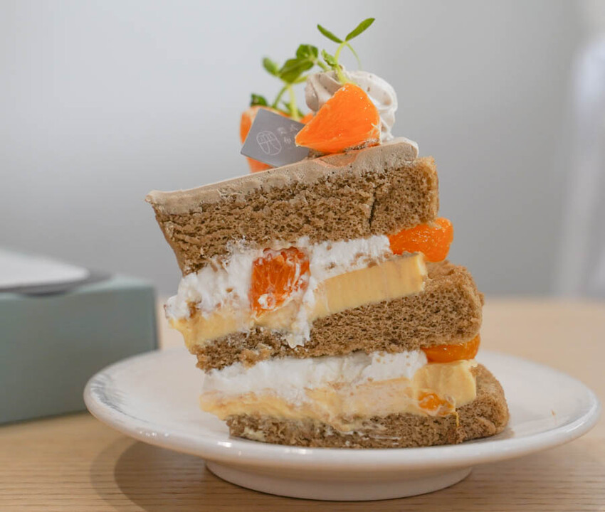 層次堆疊相當豐富,一層培茶戚風蛋糕,覆蓋布蕾再鋪上滿滿的砂糖橘,中間還細藏綿密奶油