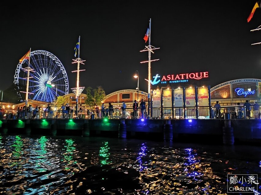 大概搭乘10分鐘左右,就會抵達Asiatique河濱碼頭夜市,