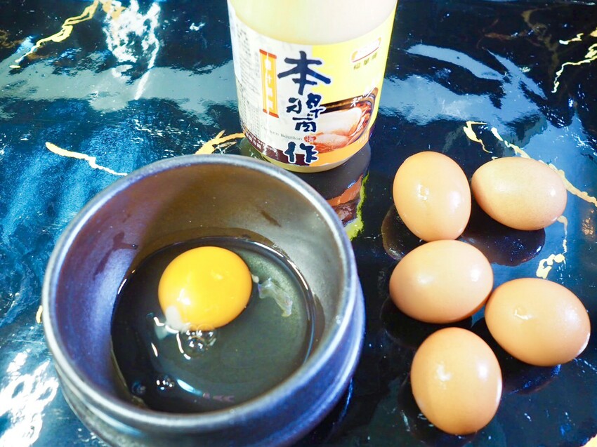 2.高湯及雞蛋混合均勻並打散成蛋液。