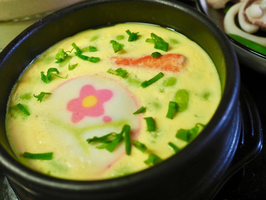 食材:『福華牌雞汁湯寶』8cc,雞蛋5顆,清水250cc,魚板,青豆,蟹肉棒