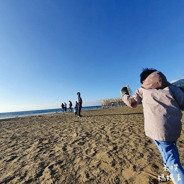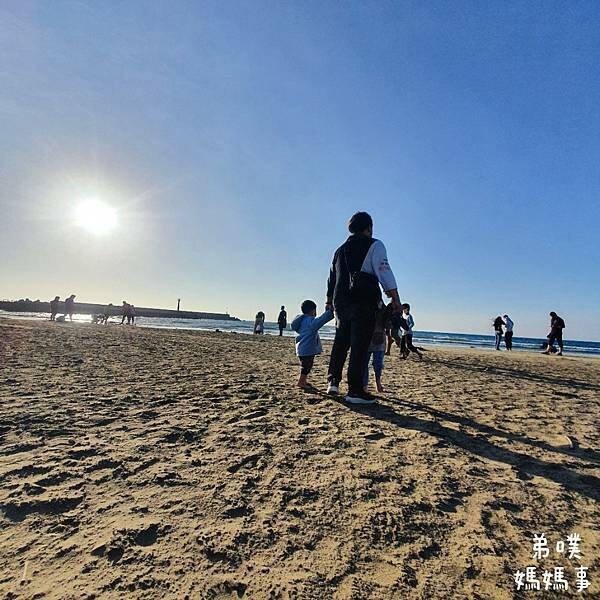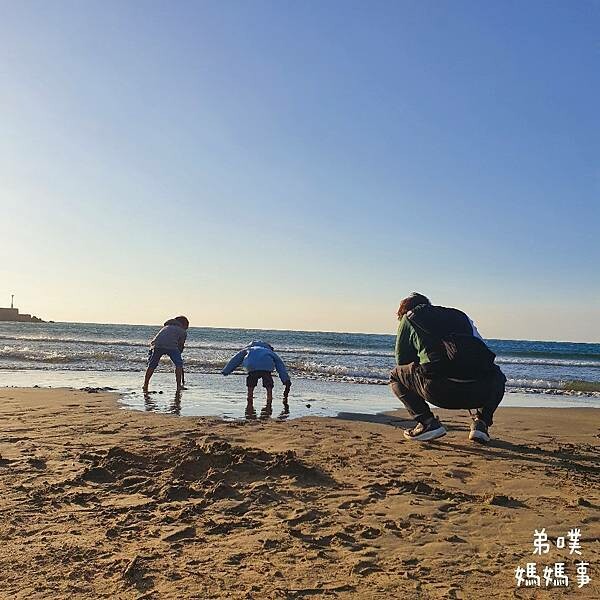 淺淺的玩玩水,而且風沙很大,孩子們有點承受不住