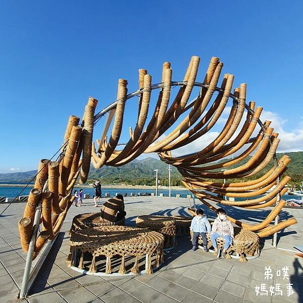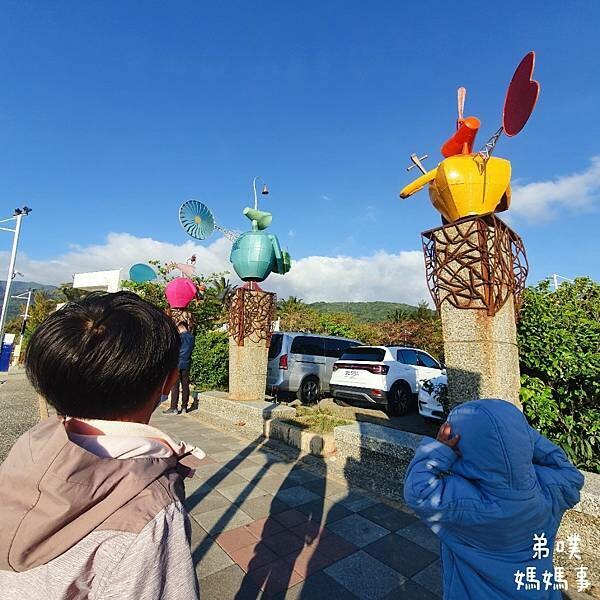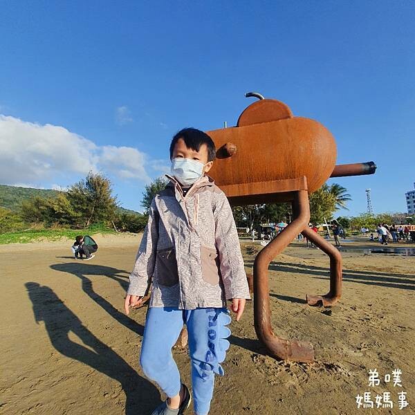 一旁的藝術品,雖然太陽很大很熱,但這落山風實在太大拉!!!!!還是讓孩子們穿上外套