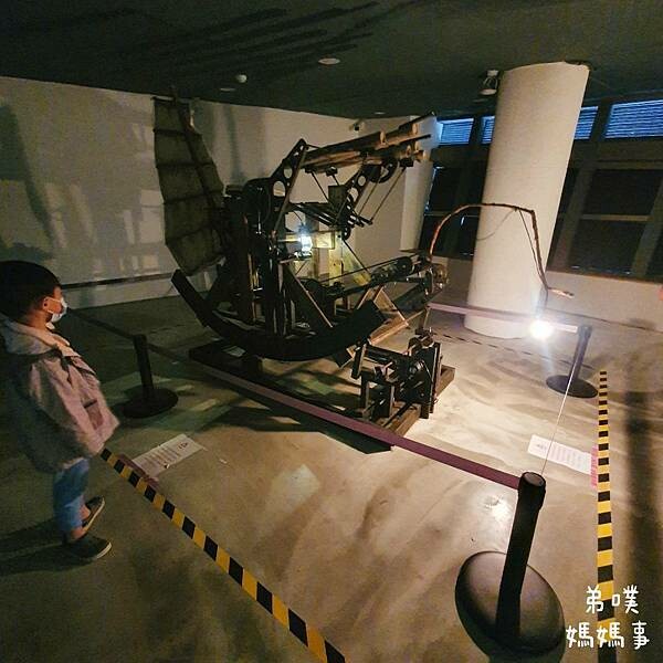 二樓有點昏暗,看到一台很像釣魚船的藝術品,然後發出聲音。弟噗突然說好像海浪的聲音
