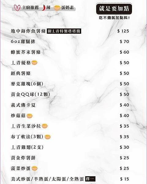 內有特製雞腿.美式炒蛋.上青特製蕃茄紅醬.帕馬森起司