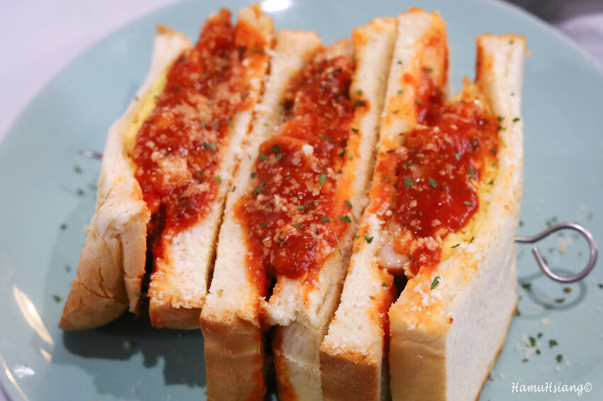 鮮奶吐司鬆鬆軟軟,這個橫切面看起來就很欠吃,特製蕃茄紅醬很濃郁